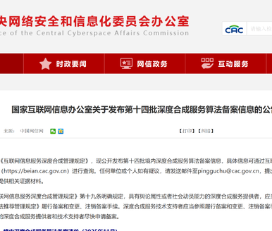 11月6日,国家互联网信息办公室公告,第十四批深度合成服务算法备案信息,苏州新增19个项目通过备案,占全省66%,位列全省第一。