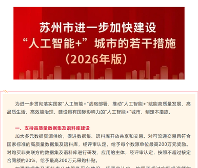 为进一步贯彻落实国家“人工智能+”战略部署,推动“人工智能+”赋能高质量发展、高品质生活、高效能治理,建设具有国际影响力的“人工智能+”城市,制定本措施。