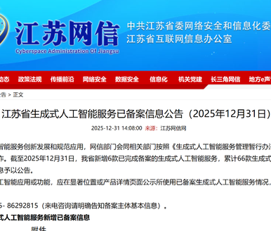 2025年12月31日,江苏网信发布新一批生成式人工智能服务已备案信息。其中,苏州新增1款大模型完成备案。亨通智缆大模型基于亨通集团三十余年在光通信领域的海量工艺知识、专家经验与生产数据淬炼而成的行业大模型。实现线缆行业“机理知识+生产数据+专家经验”的多源融合,突破传统模型局限,深刻理解线缆行业从研发、生产到质检的全流程复杂场景,致力于解决制造环节中最核心的质量、效率与成本管控难题。目前基于智缆大模型已构建行业知识问答、设备智能运维、生产工艺优化、文档智能审查等四大核心应用场景智能体。