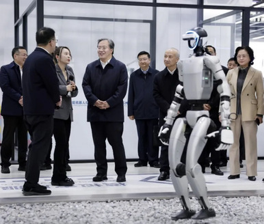 12月23日,市委理论学习中心组以现场研学、研讨交流相结合的方式,会前,市委理论学习中心组来到市具身智能机器人综合创新中心,实地察看具身智能机器人产品展示,了解技术创新、场景应用、市场拓展等情况。